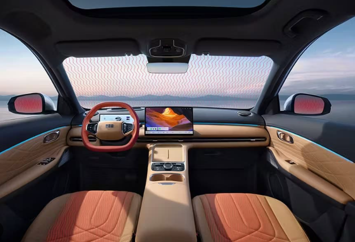 A Geely sempre foi sinônimo de tecnologia embarcada, e o EX5 EM-i não é exceção. A cabine do modelo recebeu uma atualização significativa, focando na interatividade e no conforto do motorista e passageiros.