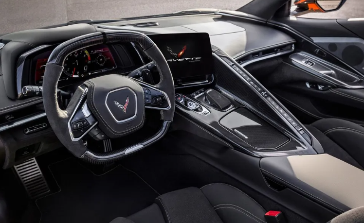 Ao entrar no cockpit do Corvette Z06 2025, o que se percebe imediatamente é que cada elemento foi projetado com um único propósito: o condutor. A posição de pilotagem é baixa, envolvente, e oferece uma visibilidade excepcional da estrada e dos instrumentos. Materiais premium, como couro de alta qualidade, alumínio escovado e fibra de carbono genuína, adornam o interior, criando um ambiente que é ao mesmo tempo luxuoso e funcionalmente esportivo.