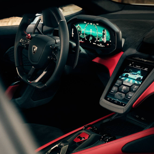 No interior, o Temerario manterá a cabine focada no motorista que é marca registrada da Lamborghini. Materiais de altíssima qualidade – alcântara, couro premium, fibra de carbono exposta – serão abundantes. A tecnologia estará integrada de forma elegante, com painéis de instrumentos digitais configuráveis, uma tela central intuitiva para o sistema de infoentretenimento (com conectividade 2025 de ponta, incluindo Apple CarPlay e Android Auto sem fio), e possivelmente displays adicionais para o passageiro. A ergonomia será primorosa, garantindo que o motorista tenha acesso fácil a todos os controles vitais, seja em uma pista de corrida ou em uma estrada sinuosa.