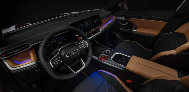 Ao abrir a porta do Compass 2026, a sensação é de entrar em um cockpit de nave espacial, mas com o conforto e a familiaridade de um Jeep. O interior repaginado adota um layout minimalista, mas de forma alguma austero. Pelo contrário, a sofisticação é palpável. O destaque, sem dúvida, fica por conta da integração das telas: um painel de instrumentos digital de 10 polegadas e uma central multimídia de 16 polegadas. Essa combinação não é apenas visualmente impressionante; ela eleva a experiência de interação com o veículo a outro nível.